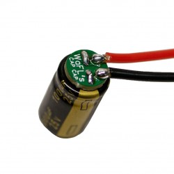Example pictures show one unit attached to a Panasonic 1000uf 25v Capacitor, and 18 AWG Silicone wire. Capacitor and wires are not included. EDA by Olaf Hichwa.